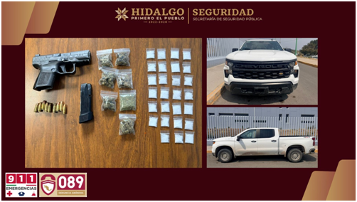 En la acción se aseguró un arma corta con cartuchos útiles, diversas dosis de narcóticos y una camioneta que presentaba alteraciones en sus medios de identificación.