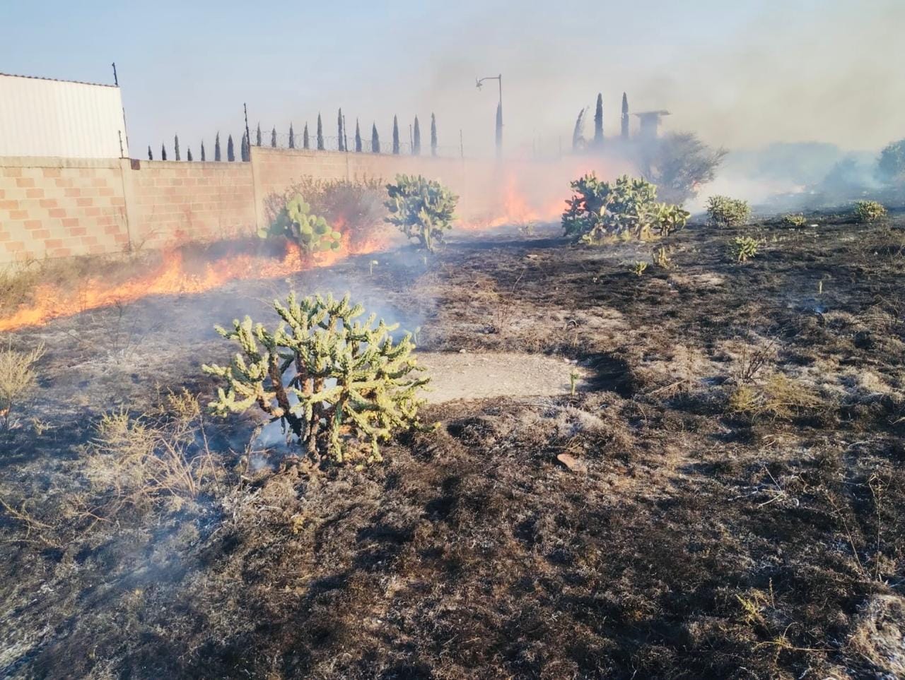 Protección Civil y Bomberos hace un llamado enérgico a la población para evitar la quema de pastizales, no arrojar colillas de cigarro en la vía pública o en terrenos baldíos y abstenerse de tirar basura que pudiera generar combustión. Se reitera que una pequeña chispa pudo haber provocado consecuencias mayores.