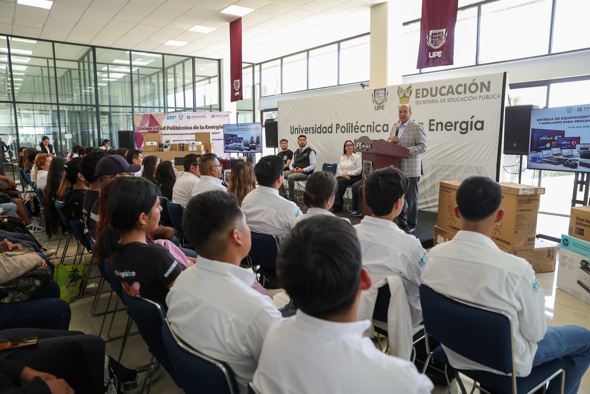Con una inversión de 2 millones de pesos, el Gobierno del estado entregó equipamiento tecnológico y mobiliario a la Universidad Politécnica de la Energía (UPE), en beneficio de 630 estudiantes.