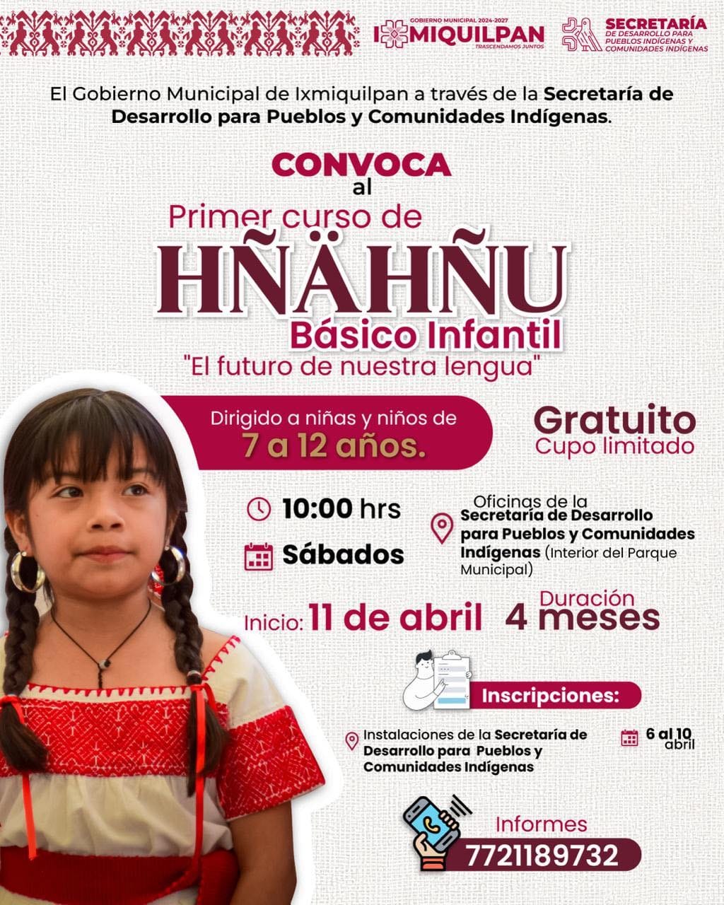 Con el objetivo de preservar y fortalecer las lenguas originarias, el Gobierno de Ixmiquilpan, en coordinación con la Secretaría de Desarrollo para Pueblos y Comunidades Indígenas, lanzó la invitación al “1er Curso de Hñähñu”, dirigido a la niñez del municipio.