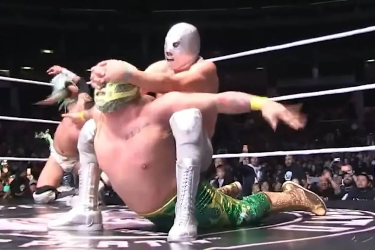Con la famosa llave -a caballo-, el Hijo de Santo rindió al Hijo de Fishman para definir la victoria, su última como profesional.